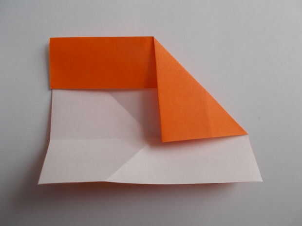 5. Abra la solapa inferior y doblar el borde de la esquina superior derecha hasta el primer doblez de la parte inferior.