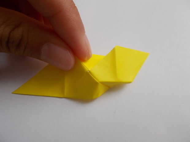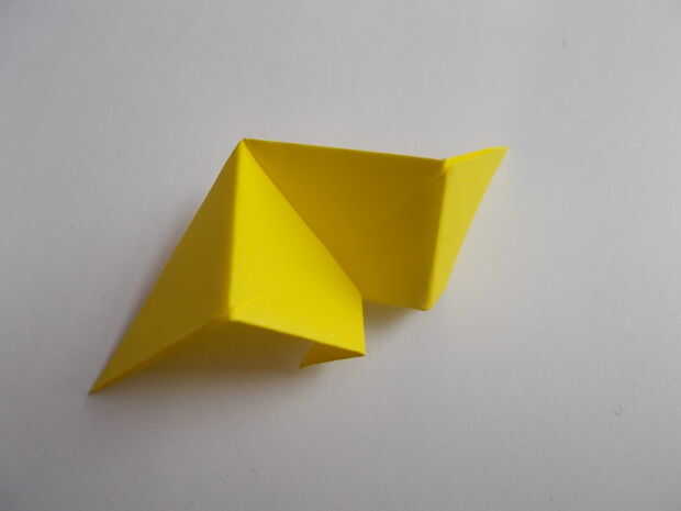Usted necesitará doblar inteligentemente (y corte) partes de las unidades por lo que algunas piezas de espectáculo y otros no. Para ello, doblar un poco de la esquina inferior derecha hacia arriba para que veas un trapezoide. Entonces... seguir las fotos (es más fácil así).