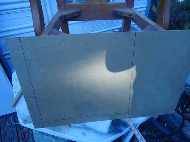 3. corte un pedazo fino de madera (1/4") a las mediciones de la parte inferior de la silla.