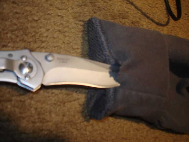 1. corte un hloe en la capucha. Debe ser lo suficientemente grande como para poner cosas, pero lo suficientemente pequeño como para no caer hacia fuera.