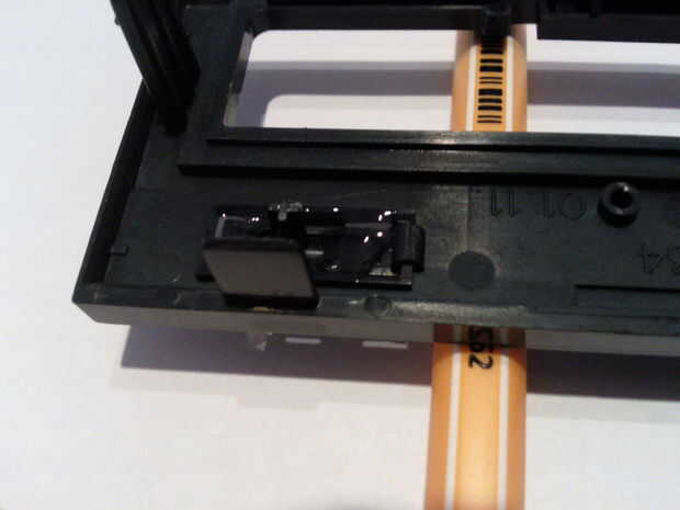 Asegúrese de no pegar la parte posterior del cierre conector de audio.