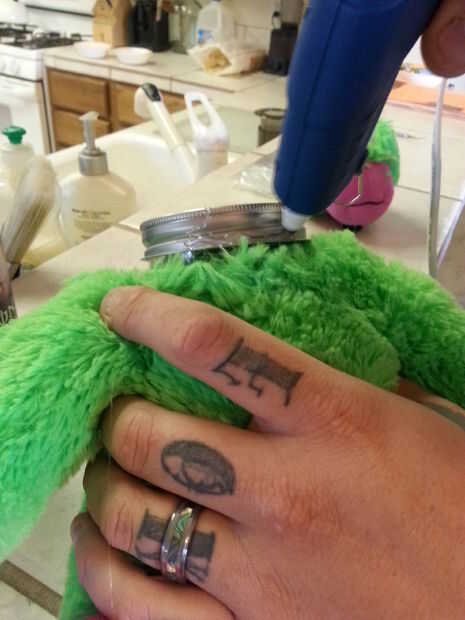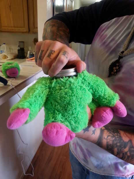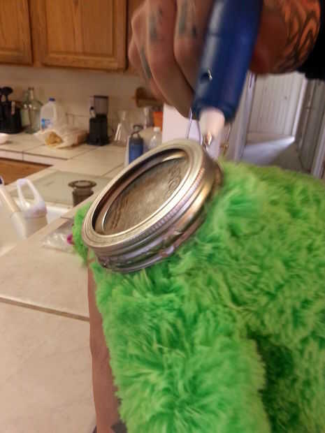 puede hacer esto con la tapa puesta o no. Prefiero que sea en la jarra para que la cabeza de los osos de peluche se enfrenta a la forma correcta de