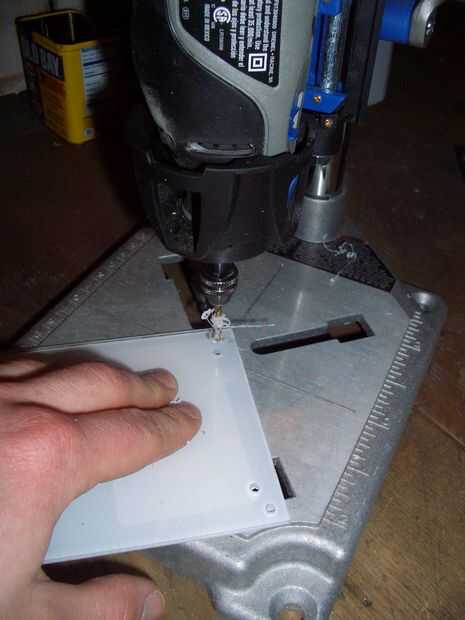 usé la estación de trabajo Dremel para perforar agujeros de mi. Encuentro con plexiglás y un taladro recargable 18v grande * * tienden a romper las esquinas del peso del taladro.