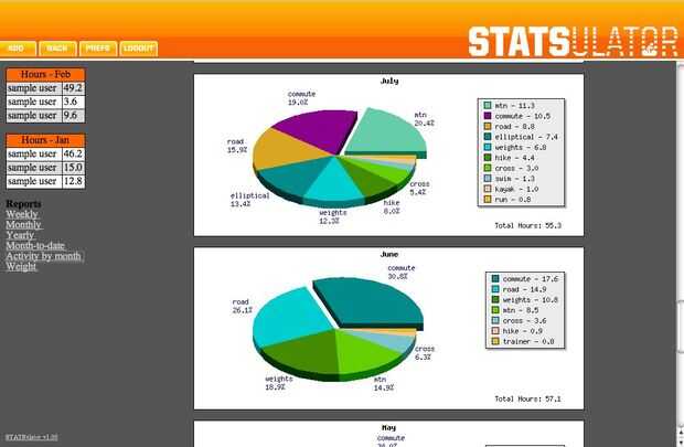 La página de uso más que cualquier otra cosa es esta que me muestra mi actividad por mes en gráfico de sectores y de barras. hay un gráfico para cada mes y luego dos que muestran a veces de montar bicicleta. La bicicleta uno puede activar y desactivar si no eres un jinete de la bicicleta.