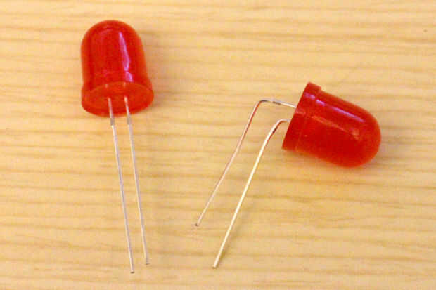 Decidí doblar los cables del LED con un ángulo de 90 grados para que la pila de moneda podría ser colocado contra el ojo de la estatua y el LED sería orientado a la dirección correcta. Una manera fácil de hacerlo es colocar el LED a la batería y sólo la curva sobre el borde de la batería.