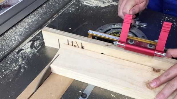 Mientras que la madera fue empapando hice unas pequeñas cuñas en la Sierra de mesa inclinando los ingletes a 10 grados haciendo un corte entonces endereza la Mitra calibre hacen un corte etc., más detalle puede verse en el vídeo de YouTube.