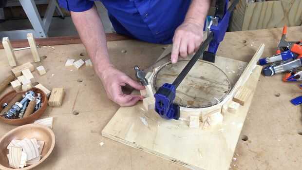 Entonces usando las cuñas una vez más los martillo en asegurarse de que hay buena presión todo el camino alrededor y sin espacios.