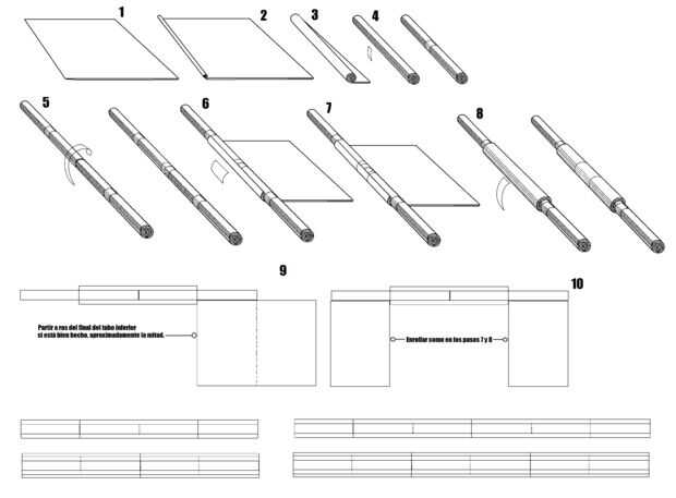 Solo un último detalle, y es que, aunque no es necesario, si quieres resistencia extra, puedes usar una varilla sobre la enrollar el papel, lo cual le dará una resistencia adicional importante, ya el punto debil de estas barras es el hueco queda en el interior y el secreto para que sean resistentes es minimizar el tamaño de este al máximo.