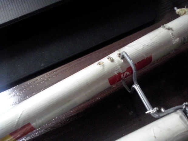 Para ello usado alambre de tendero y papel enrollado para el mango, de igual manera hiciera con la barra principal pero más corto, del tamaño del puño y unos cuatro centímetros más.