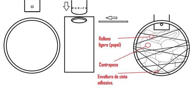Para esto hay muchas opciones, pero lo ideal es algo se pueda regular de alguna manera. Lo ideal sería un contrapeso ligero se pudiera subir o bajar con precisión para ajustar el centro de masas, pero en mi caso, la opción encontré fue usar un rollo de cinta vacío y usarlo como recipiente para añadir o quitar peso.
