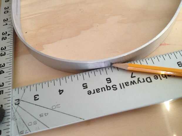 Finalmente, después de doblar el marco, coloque el marco en un cuadrado como se indica en la foto final y marca la cresta de la curva. Centro de su marca y perfore un orificio de 1/4" para el perno delantero de peso.