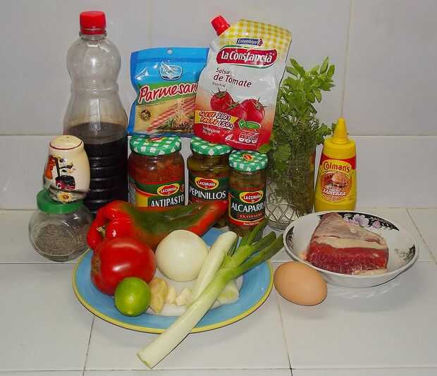 Opcional: Salsa Tabasco y Antipasto. Antipasto: En mi país es una especie de salmuera que contiene salsa de tomate, habas, setas, zanahoria, coliflor, apio, pimientos, pepinillos, cebollas, aceitunas y lomos de atún.