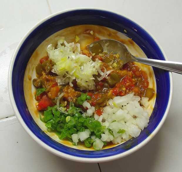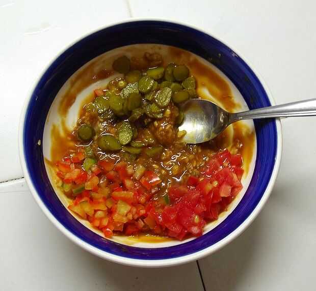 - 2 cucharadas de tomate, cebolla, Ciboulette o cebolla de verdeo, pimiento morrón y pickles.