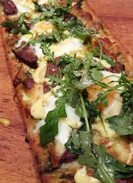Pruebe esta versión Centroamericana hermosa y elegante de huevos Benedict.En medio un English muffin frito por un lado en aceite de chorizo, rematado con el chorizo finamente rebanado y frito, rebanadas de aguacate, un huevo escalfado perfectamente,