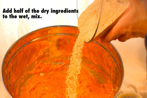3. Añadir el resto de los ingredientes secos y mezclar.