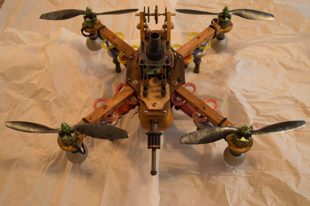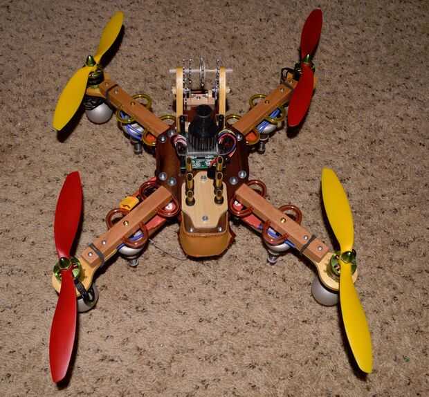 Yo corría menos acrílico comprado y se preguntó si podía hacerla de madera dura cepillada hasta 1/8". Aquí es donde el drone Punk de vapor. He usado la nuez para el cuerpo, cerezo para los brazos, y esta vez corte mis propios soportes del motor de una madera de caña. Esto mostré al grupo yo soy parte de un grupo de FB y alguien me desafió a hacer Punk de vapor. Va a Inventor comencé a diseñar las piezas para los aviones no tripulados. Tenía que ser la luz, parte del diseño modular y artística. Esto es lo que ves en este sitio Web. Yo vendiendo este drone en Ebay una vez que obtenga los apoyos negro y haya terminado de pintura y antigüedades de las partes. Si no te gusta el look punk de vapor usted todo lo puede sacar y va a ser solo un zángano de nuez agradable vuelo. Estoy a 800 a 900 gramos con la batería. Me atrevería esto podría levantar otro 900 gramos con algún sacrificio a la vida de la batería en un 3s 3000 mah de la batería. Me encanta diseñar estos zánganos. Creo que son el futuro. Puedo estar recibiendo una impresora 3D con las ventas de este zángano. Espero mantener aprendizaje, construyendo y diseñando para un muy de largo plazo. Yo todavía soy un aviador novato y hay una amplia gama de aprendizaje para mí hacerlo. Compré unas gafas FPV y será aprender más acerca de este tipo de vuelo como mis habilidades desarrollan.