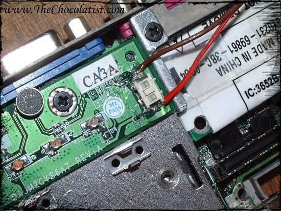 Este interruptor primero fue un motivo de dolor de cabeza! Pero finalmente pude solucionar el problema muy fácil - "hacer"! Había soldado los cables por el interruptor externo directamente al interruptor de muy pequeño en la placa base. Asegúrese de no calentar demasiado cuando haces eso...