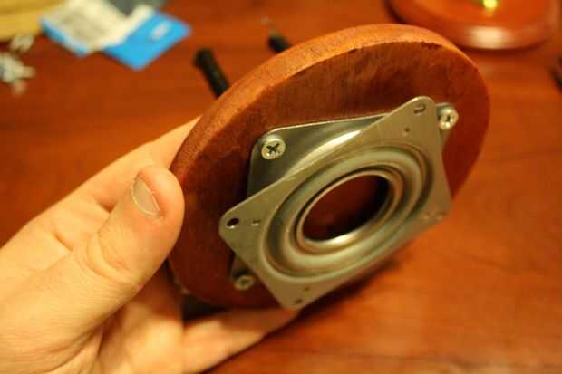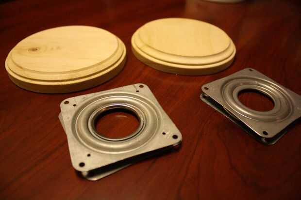 Ahora debe tener dos bases muy bien manchados, cada uno con dos patas de acero flexibles y Lazy Susans en la parte inferior para que puedan girar 360 grados. Realmente parecen no perezosas me estas Susans.