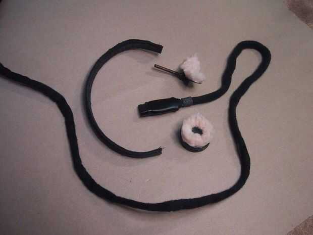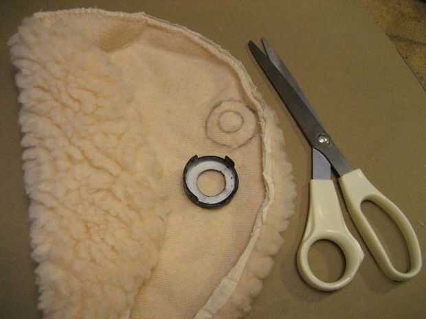 Corte una rosquilla en forma de almohadillas de oído imitación piel de oveja. También corte una forma de círculo de material negro delgado. El diámetro de ambos debe ser el mismo que el diámetro de la Asamblea de la taza de oído. Pegar el paño negro primero luego la zalea sintética sobre la tapa de la botella de Excedrin. Utilice pegamento para tela o equivalente. Usted es hecho, tomar una cerveza.