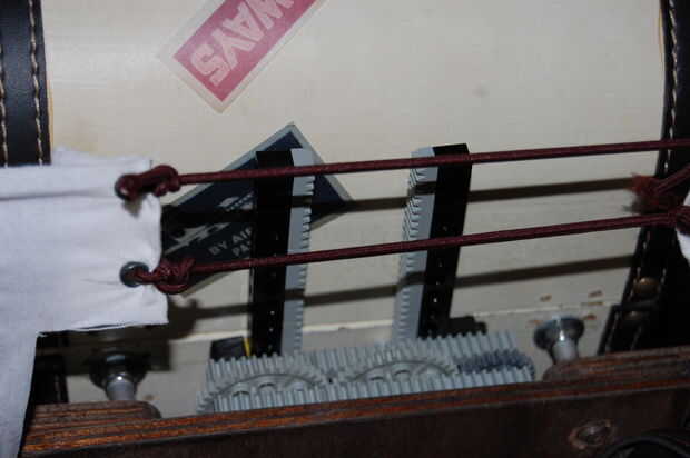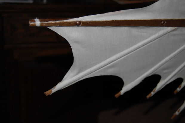 Finalmente he añadido 2 pares de lazos elásticos (a en la parte superior, 2 en la parte inferior) entre las aletas del centro libre de las dos alas para que estén bajo tensión cuando está extendido...