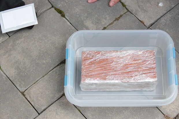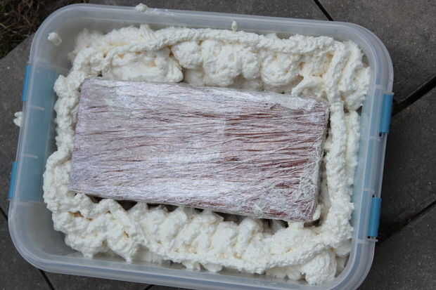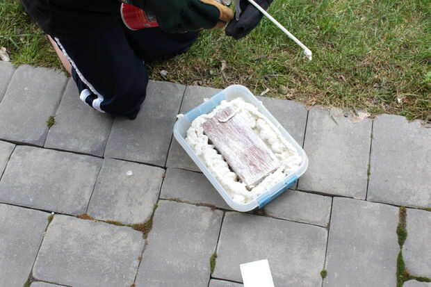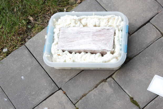 5. espere 8 horas y quitar el ladrillo, el bloque de espuma aislante todo debe caer fácilmente.
