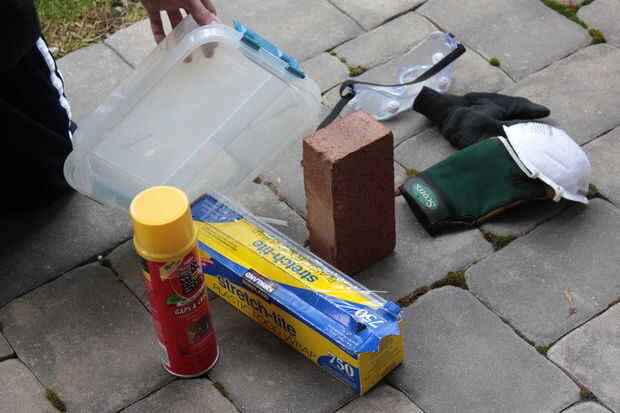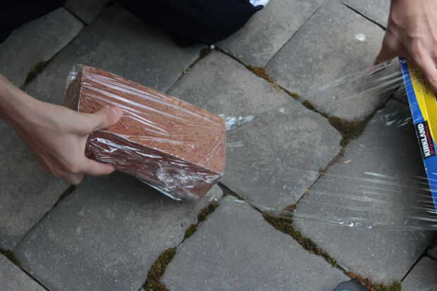 1. Envuelva el ladrillo dentro de la envoltura de plástico.