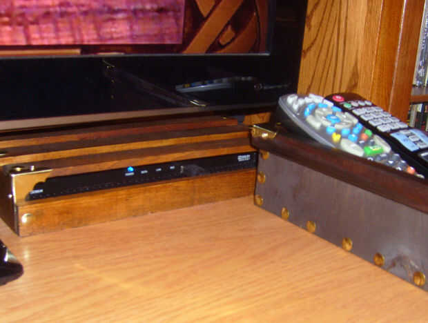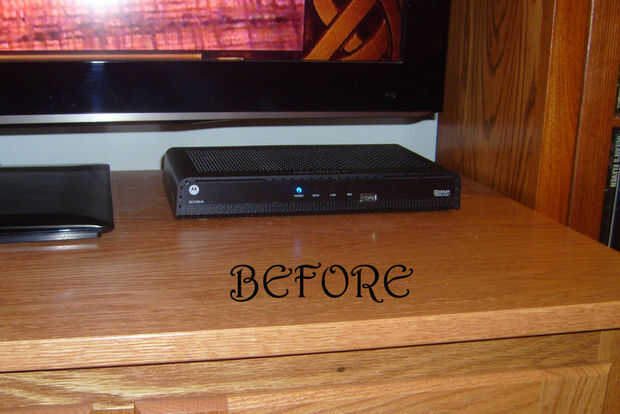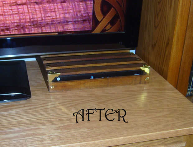 La mayoría de nuestros muebles es roble, incluyendo nuestra unidad de consola de entretenimiento, por lo que la caja de cable negro brillante sólo estaba parado hacia fuera como un pulgar dolorido. Pensado en intentar construir una caja de cigarros para él, pero no pudo encontrar uno bastante grande, (y estaba preocupado por lo caliente que puede llegar y que también cubre el componente infrarrojo). Casi por accidente, encontré una caja de madera abierta y se dio cuenta que era las dimensiones perfectas para cubrir mi caja de cable. También tenía una caja de estilo similar que fue apenas el tamaño correcto para nuestros mandos a distancia.