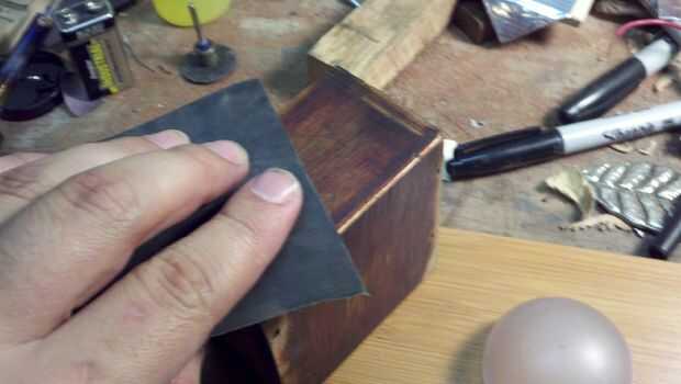 Lo primero que vamos a hacer es encontrar una caja adecuada (intentar su tienda de artesanía local). Probablemente necesite un tamaño interno de al menos 2" en cada dirección para adaptarse a todos los componentes, pero fácilmente podrían hacer modificaciones. Me gustaron los accesorios que mina vino, tan escogido para arriba algunos más en la misma tienda de artesanía. También quería que mi caja tiene más de una mirada resistida, así que atacó con un lija de grano fino. Simplemente usé grano 400 porque era práctico y no necesito quitar gran parte del final. Ahora, vamos a encontrar las siguiente piezas...