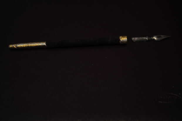 Lugar para engranajes en el extremo de lápiz led por lo que tocan al lado pero no en el uno al otro. Luego pegarlos abajo.