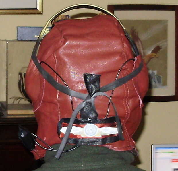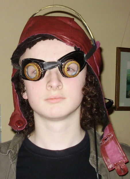 Gafas - (ver mis otros instructable para hacerlos) poner las correas a través de la tira de sujeción en la parte posterior del casco, para que no perder las gafas protectoras cuando se les quita. De esa manera todo lo que necesitas es fijo el casco listo para el despegue en tiempo mínimo!