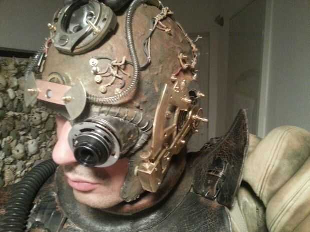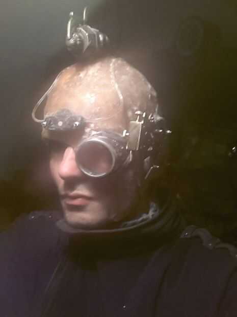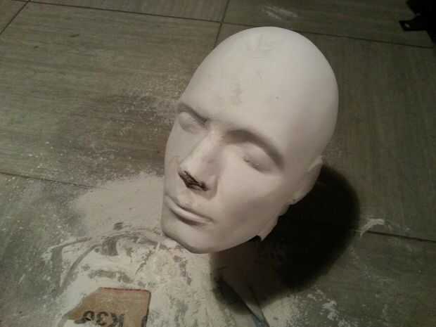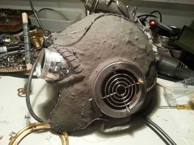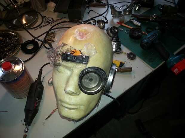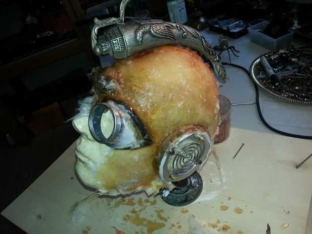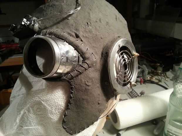 2. en la cabeza de yeso que las piezas se fijaban, que quería integrarse en el casco (parte de unas gafas de soldador, protectores de ventilador,...)
