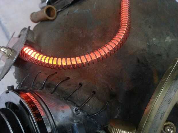 8. viejos cables eléctricos y tornillos de latón se instalar en el exterior al casco.