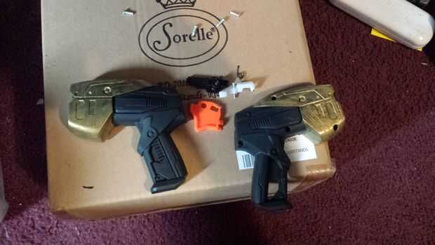 hay más instrucciones en cómo a mod y pintura Nerf pistolas de Steampunk. En cambio aquí hay algunas fotos de mis armas para darle sus propias ideas. Ambas armas son funcionales y todavía dispara dardos Nerf. Después de todo, siempre es mejor una pis