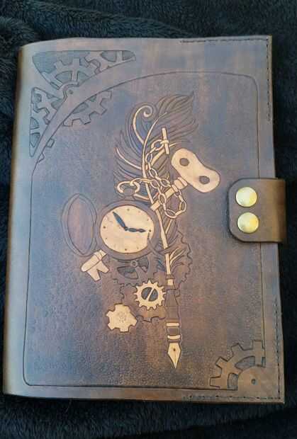 Mano tallada Steampunk recargable portátil cubierta cuero cabe un notebook de 7,5 "x 9".
