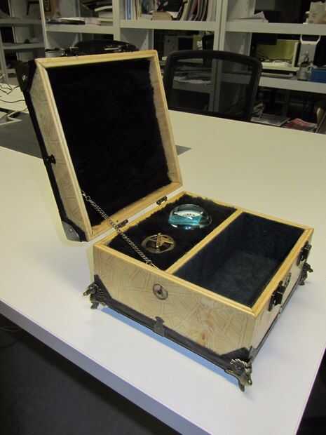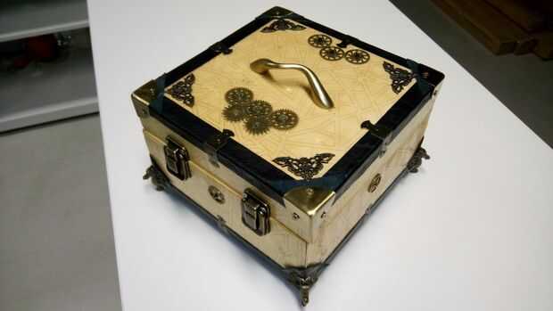 Hemos hecho esto como un regalo para un amigo especial para 27 de la escuela de ingeniería. Le había gustado la caja de la trompeta que hemos hecho anteriormente. (Çiğdem y yo) decidimos hacerle un regalo especial similar. Sabíamos que le gusta tener puros agradables y de vez en cuando y poco le gusta fumar uno. Así que decidimos construir él una caja de puros. Para dar el cuadro de personalidad un poco más, nos gustó para formarla como caja de almacenaje de un ingeniero de herramientas de la era de steampunk.