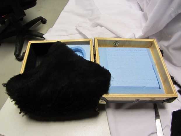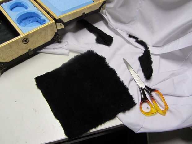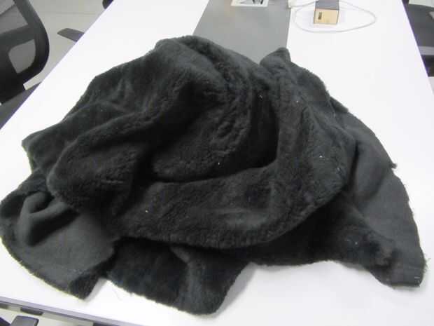 pedí a un amigo (el que está que hacemos este presentes para en realidad :)))) un pedazo de piel artificial como tela. Nos dio un gran pedazo de 2mx2m. Será bueno para muchos otros proyectos por venir.