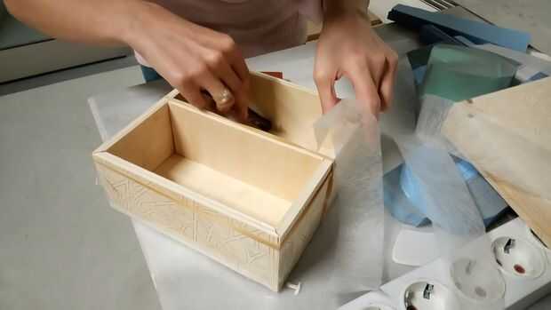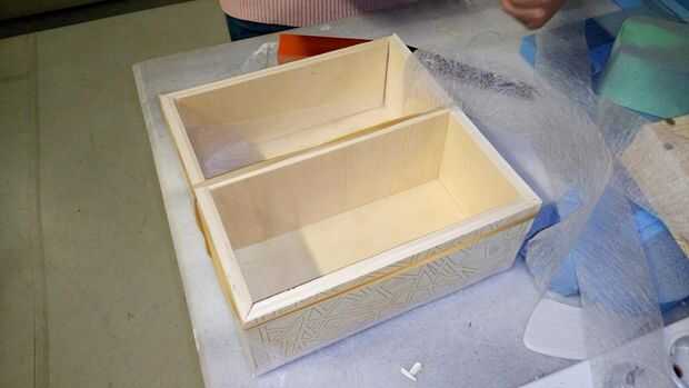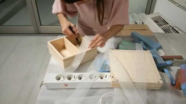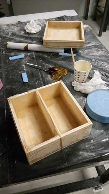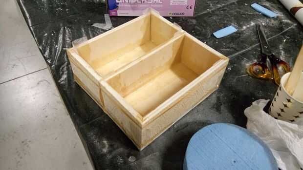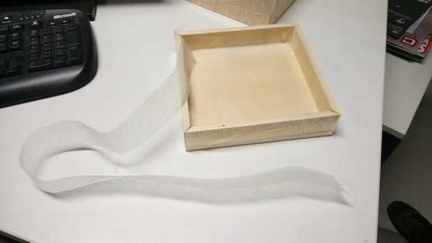 Se utilizó una capa delgada de tela de fibra de vidrio para dar el cuadro de más fuerza. No usamos a una tela más gruesa como hicimos para la caja de la trompeta, como esta caja estará sentado encima de una mesa toda su vida. No hay necesidad de soportar grandes fuerzas como mi caja trompeta sufrido durante mi viaje en bicicleta 20 días por Europa el verano pasado.
