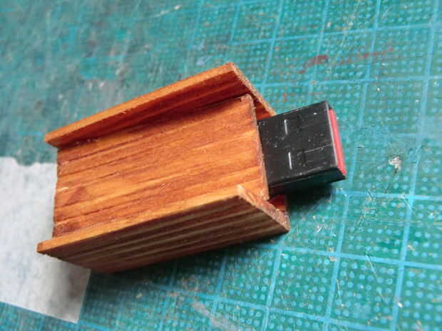 Al pegar el palillo de la memoria en su lugar con pegamento UHU Asegúrese de conseguirlo en recto (me llevó dos intentos y un montón de maldiciones)