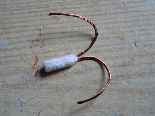 Cable aislado formado por envolver cinta de tela alrededor del alambre de cobre rescatado de una fuente de alimentación de PC muerta