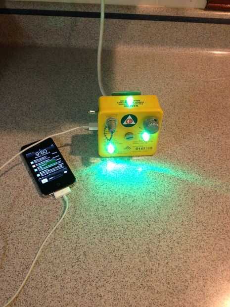 Compré un sistema de altavoz externo pequeño para un iPhone en Radio shack por $14 USD y quebró para caber en un década de 1960 vintage Defensa Civil radition detector de nivel. Los conseguí en eBay barato! como $12 cada uno. e incluso trabajan!