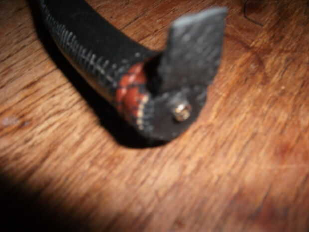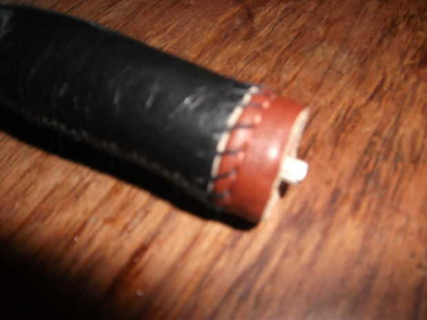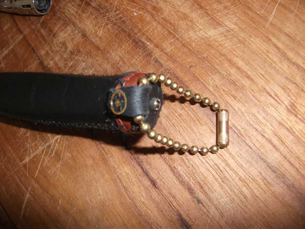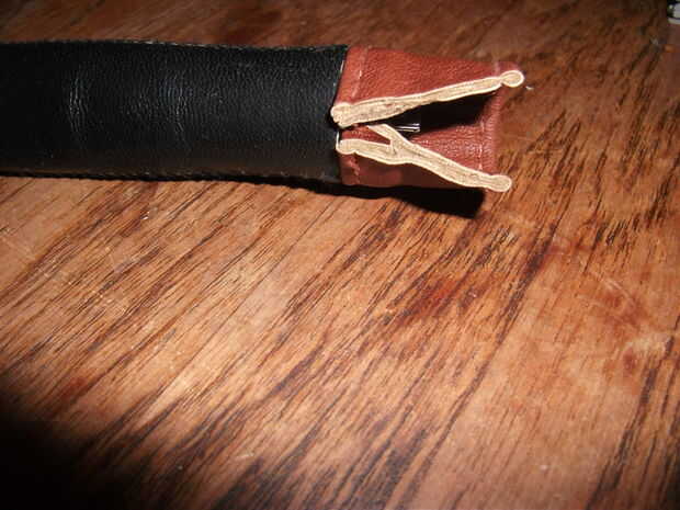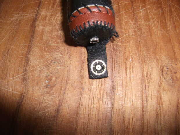 coser el otro extremo de la tira de cuero, con el encendedor.