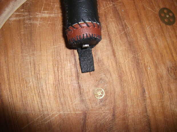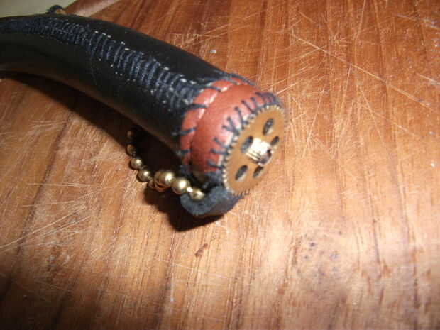 Ahora usted puede coser un pequeño engranaje, yewelstone, botón o lo que nunca a la tira de cuero.