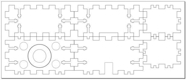 Use el SVG adjunto o archivo DXF a láser corte el caso para el reloj - esto sirve para 6mm abedul. Las ranuras en T se fijan para 20mm que m3 los pernos y las tuercas. Si no tienes acceso a aquellos y diseñar algo nuevo, por favor hágamelo saber! Puedo agregar aquí como una opción para otros.