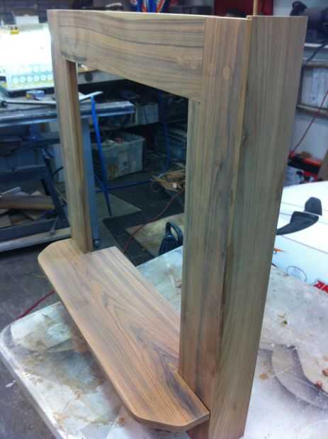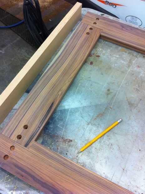 La madera roja es Paduk con ébano en la tira se cortó por la mitad para caber debajo de los bordes superior e inferior se establecen.