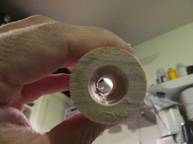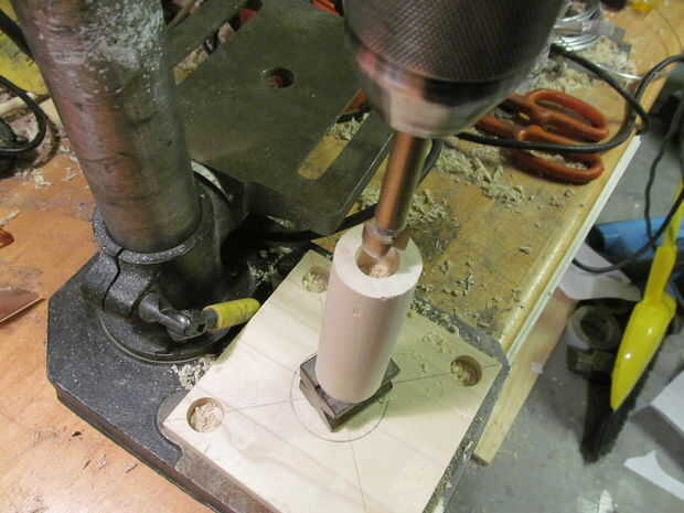 Luego usé un 5/8" forstner broca para perforar completamente el mango.