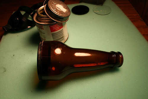Mientras esperas para que el cemento se seque, empieza a reunir sus partes y piezas de su cajón de basura del taller que aplicará a las gafas más adelante.