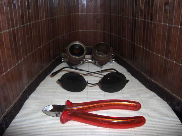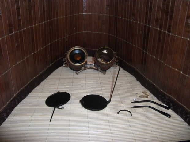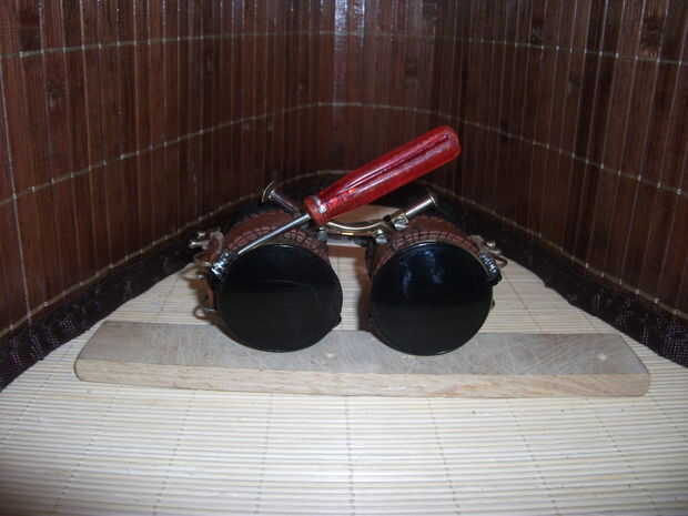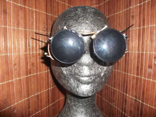 Por lo menos debe encontrar unas gafas redondas con lentes oscuras.