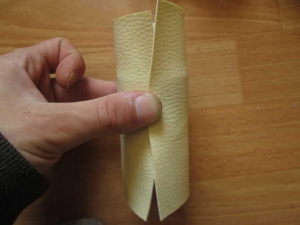 Ahora prepare su piel. He utilizado cuero falso. Su color no es realmente blanca, pero más como cremoso.