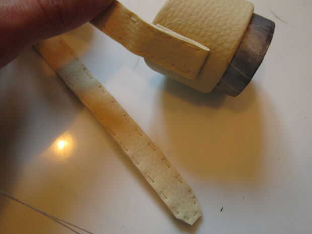 Luego añadir una hebilla y por supuesto hacer lo mismo otra vez - coser dos tiras de otro. Sólo en lugar de agregar una hebilla corte esquinas antes de coser.