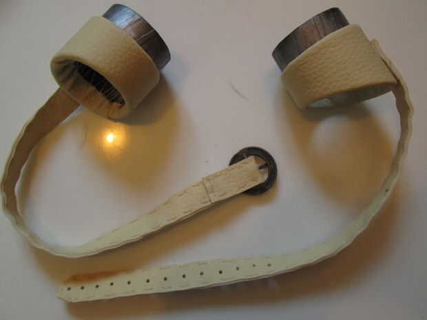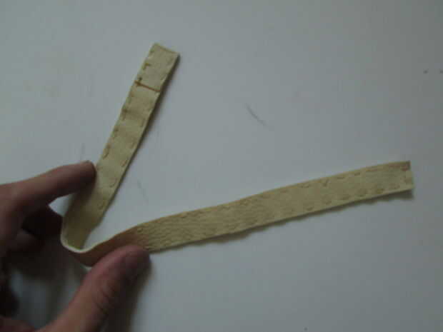 Seguramente el paso más fácil. Cortar dos tiras - 1, 5cm (0,6 pulgadas) de ancho, 31cm (12,2 pulgadas) de longitud y coserlas juntas. Todavía no sé cómo coser correctamente, pero eh, pegarlo que quiera. No importa pero de esta manera que se ve mucho mejor. Intente utilizar una amenaza que es del mismo color de su piel. ¡ Hola! Que rima!